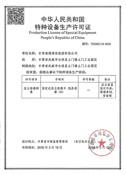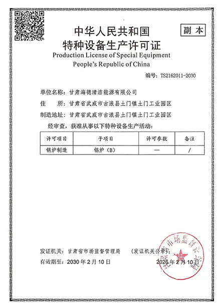 Основанная в 2018 году, ООО Ганьсу Хайдэ Чистая Энергия является предприятием, полностью принадлежащим физическим лицам, с уставным капиталом 50 миллионов юаней и занимает площадь 40 му. Компания объединяет разработку, производство и продажу технологий чистой энергии, уделяя особое внимание приобретению сельскохозяйственных и лесохозяйственных отходов, топлива из биомассы, котлов, работающих на биомассе, парогенераторов на биомассе, переработке, продаже, установке и энергосберегающей модернизации.